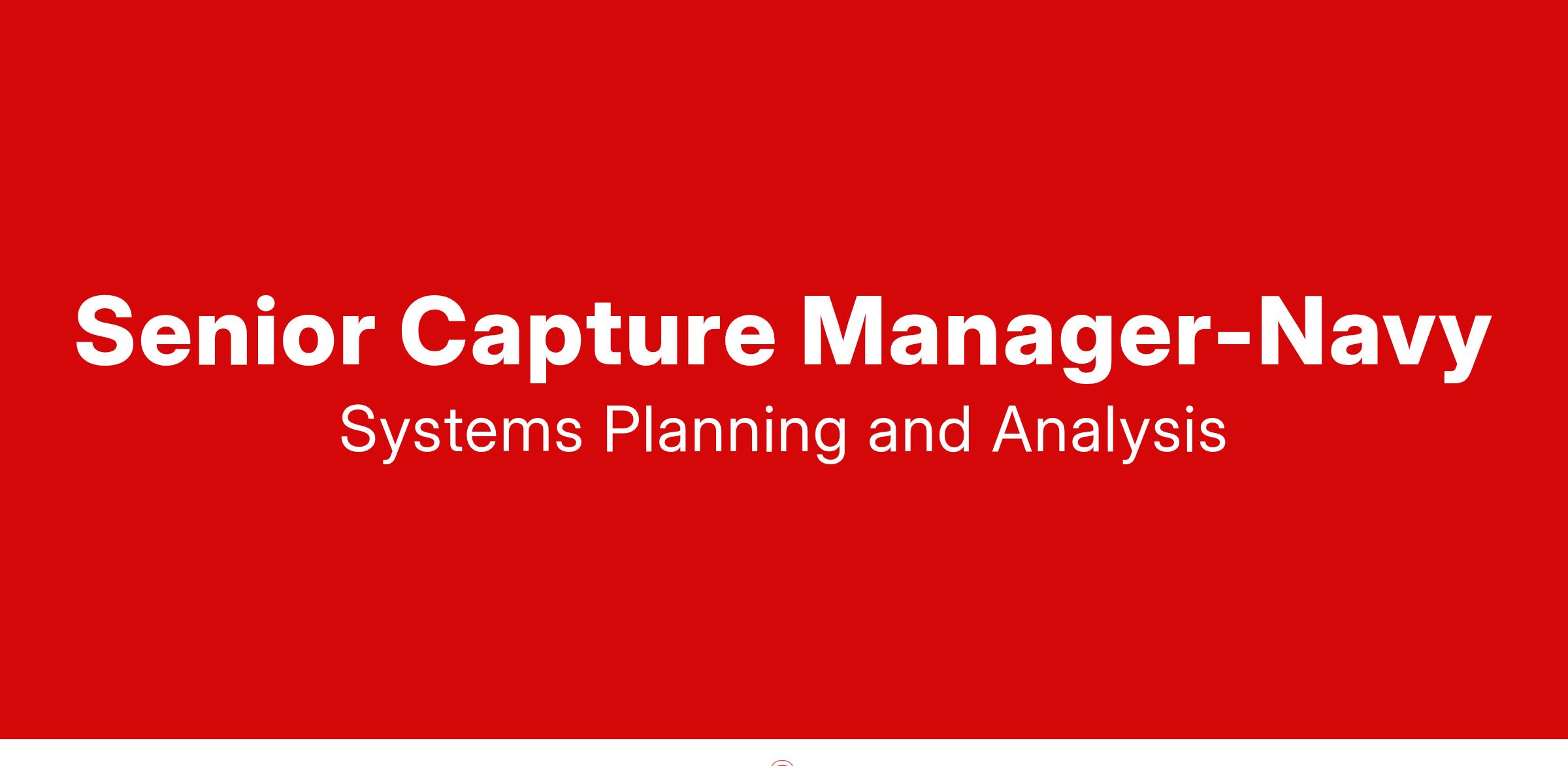 As Senior Capture Manager, the successful candidate will report directly to the Chief Growth Officer and the account Division Director to lead Federal growth activities for Navy markets focused on Naval Sea Systems Command, Naval Warfare Centers and OPNAV, including opportunity identification, pipeline management, business development, solutioning, capture management, and proposal development.
